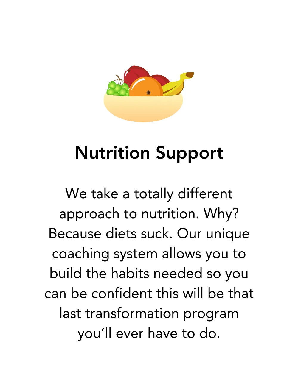 You know what counting calories, diets, and meal plans all have in common? They suck... and don't work. We take a different approach. Not only one that delivers jaw-dropping results, but one that builds health and sustainable habits, where no foods are off limits, so that your results last a life-time.