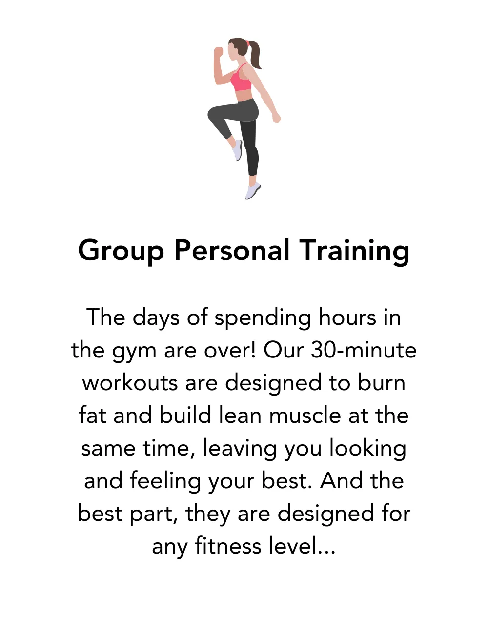 All our workouts are 30-minutes in length. They are a combination of strength training and conditioning designed for any fitness level.